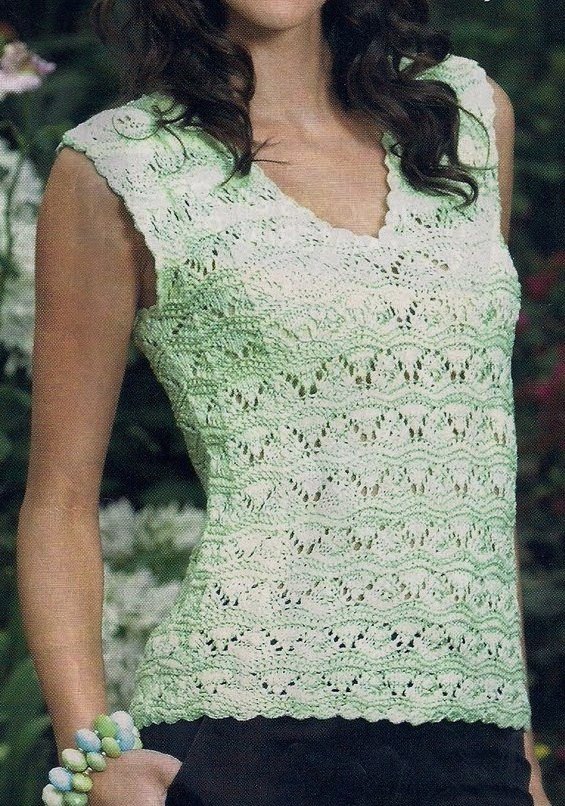 . Talla: M Material: Hilo: 500 g (100% algodón, largo 160 m/100 g); un par de agujas del n° 3-4. Espalda: Montar 83 p. + 1 p. de orilla y te...